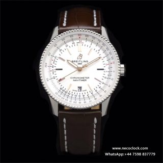 Breitling 41mm NAVITIMER White Dial Brown Leather Strap V7F A2824