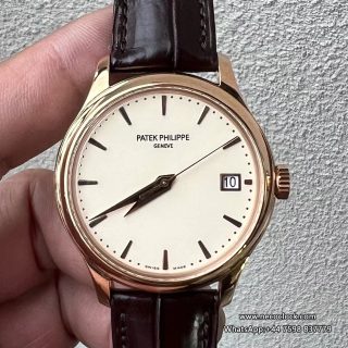 Calatrava 5227 39mm RG White Dial Black Leather Strap ZF A324SC