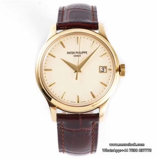 Calatrava 5227 39mm YG White Dial Brown Leather Strap ZF A324SC