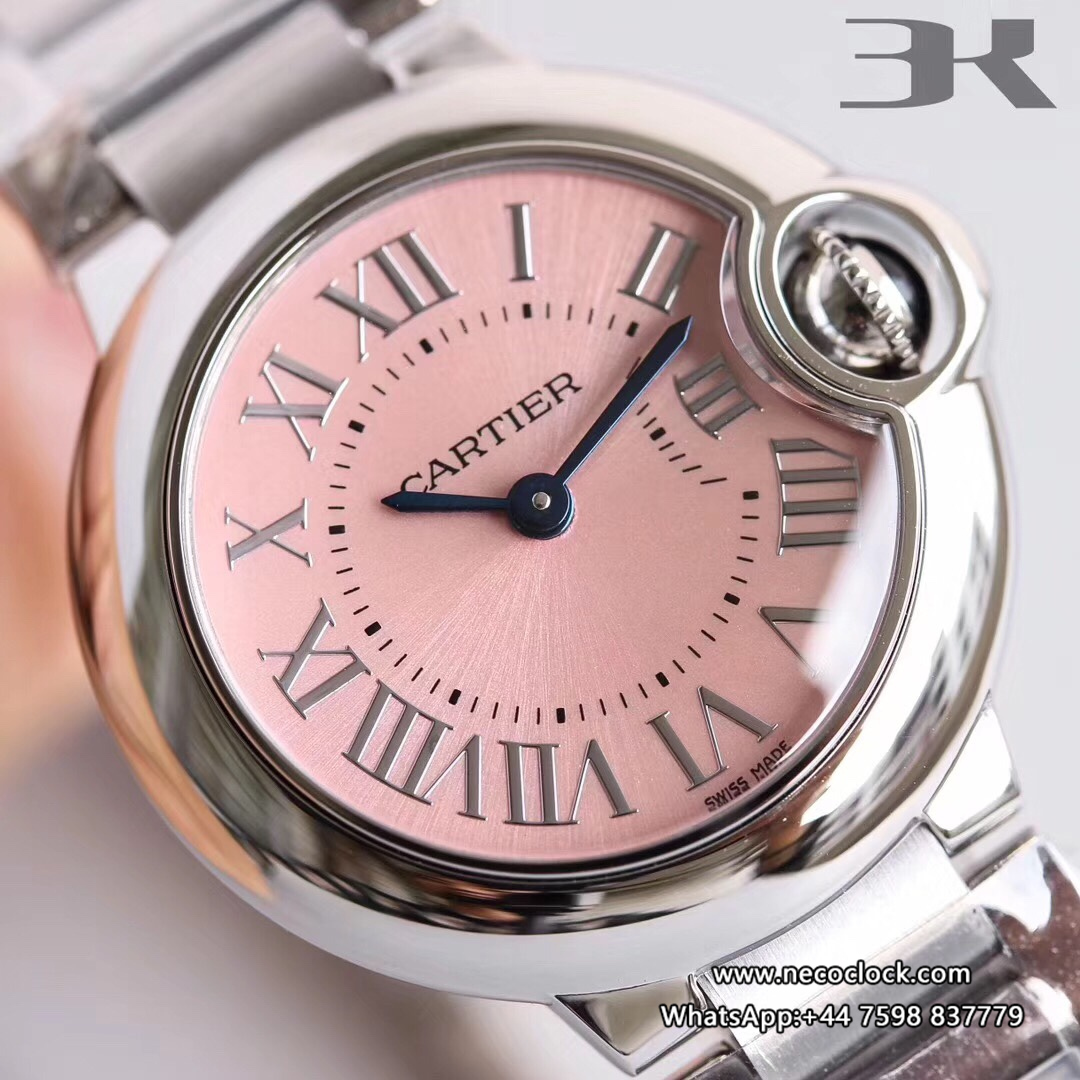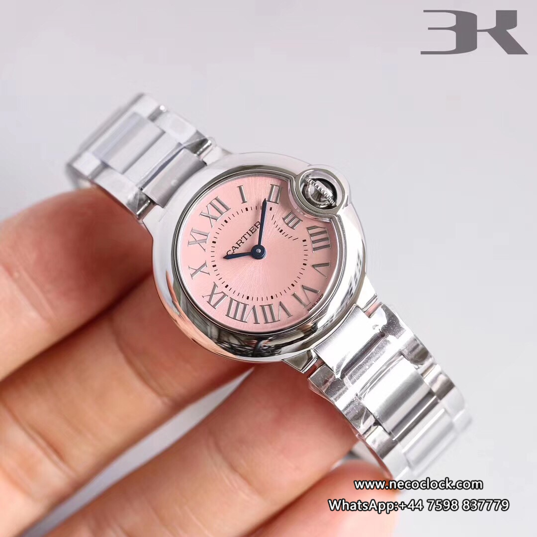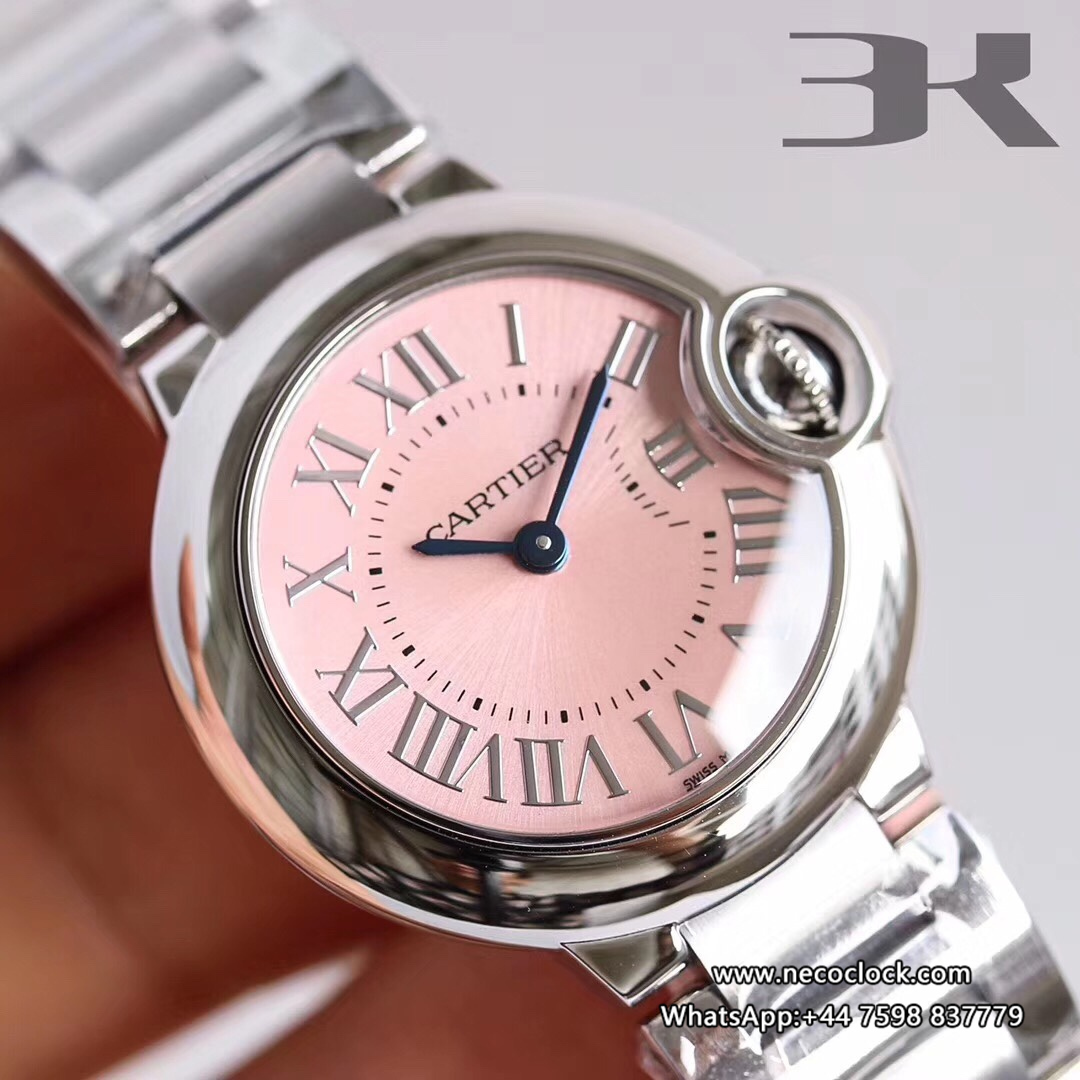 Ballon Bleu De Cartier Pink Dial 28mm Ladies SS Bracelet 3kf Swiss Quartz