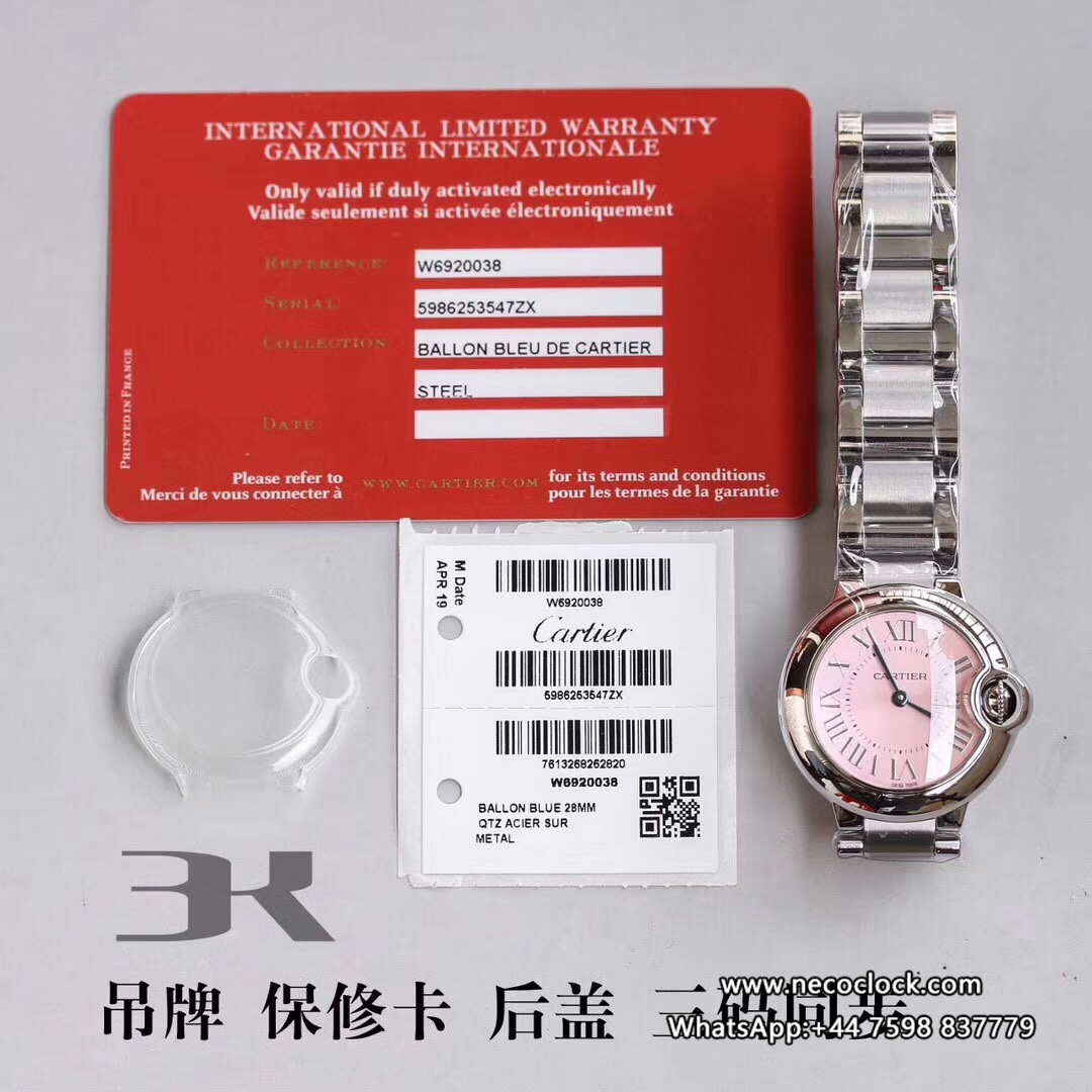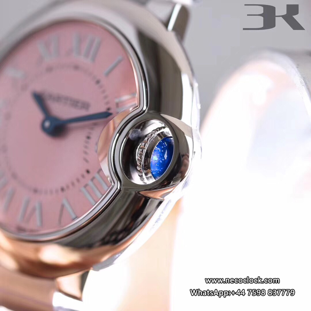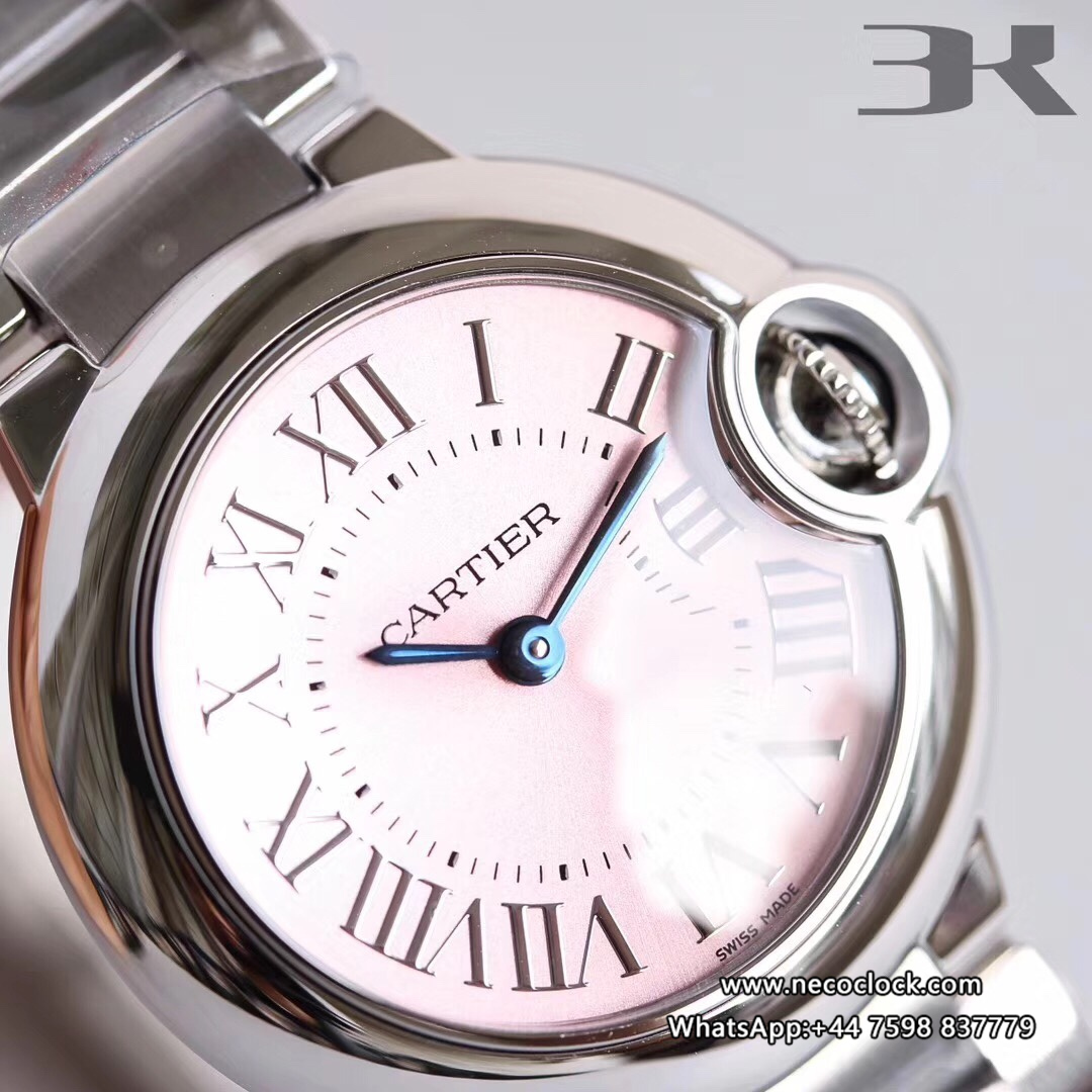 Ballon Bleu De Cartier Pink Dial 28mm Ladies SS Bracelet 3kf Swiss Quartz
