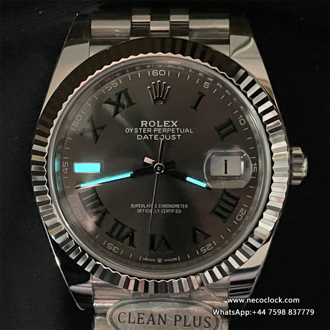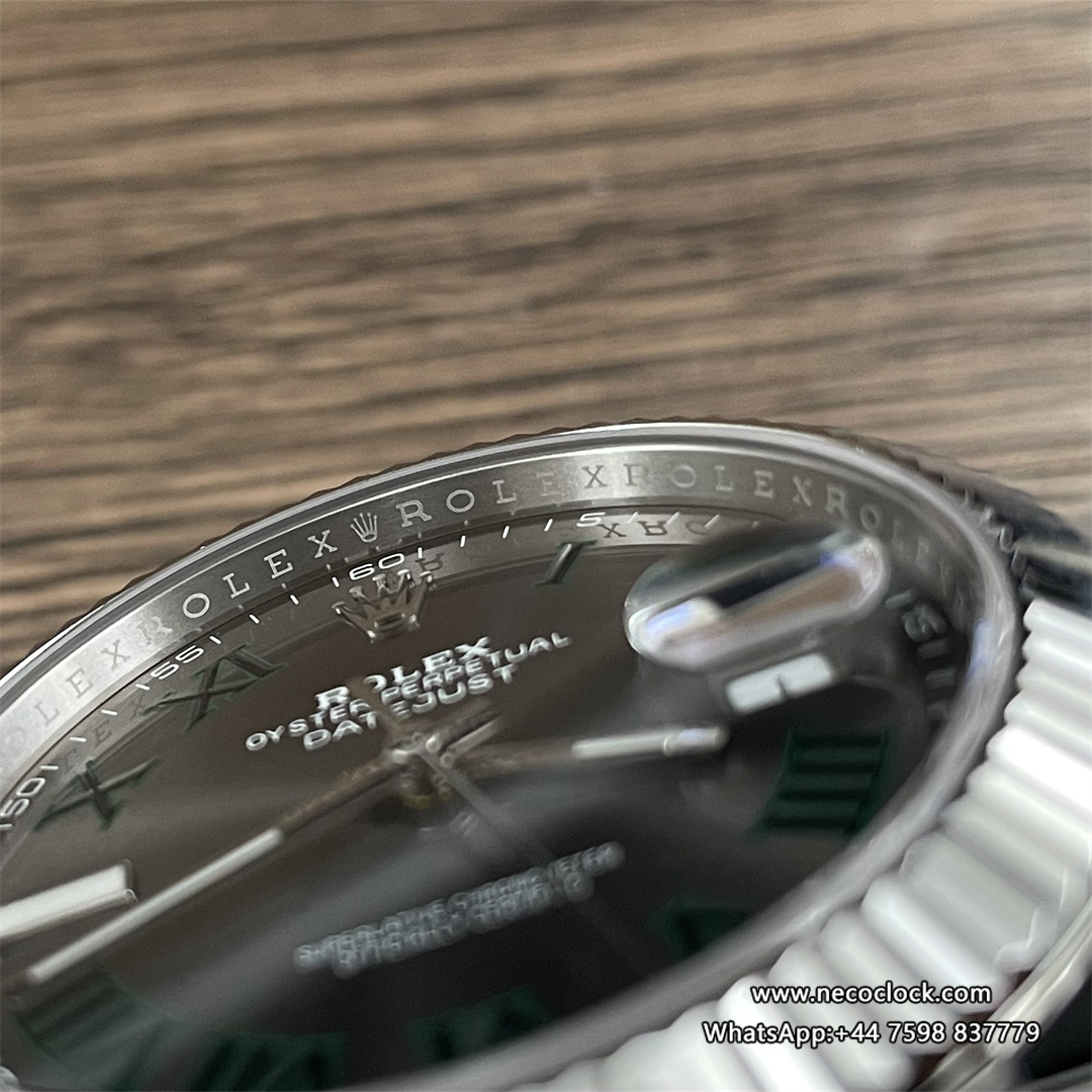 Datejust 126334 41mm Wimbledon Fluted Bezel Grey Dial Green Roma Marker Jubilee Bracelet C Plus DD3235