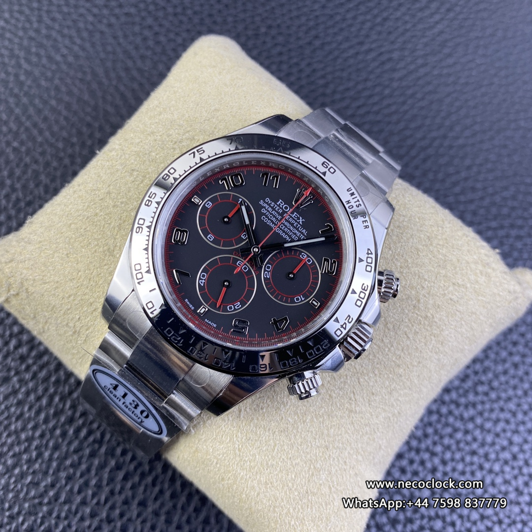Daytona 116509 Black Dial Red Hand Arabic Numerals Marker SS Bracelet Clean Factory CF SA4130