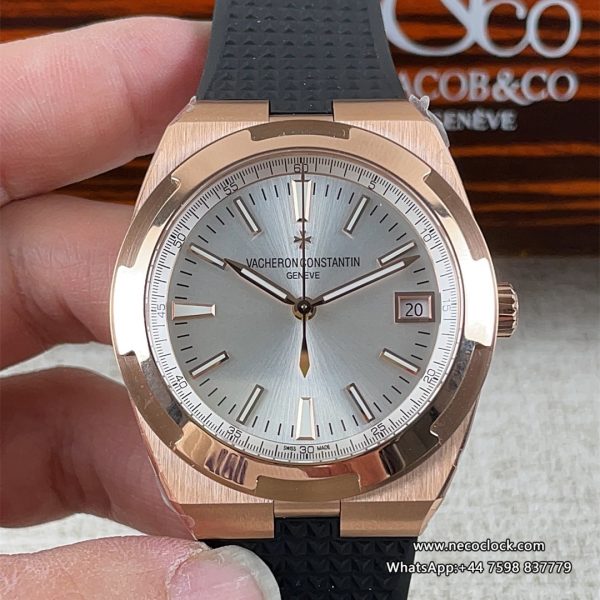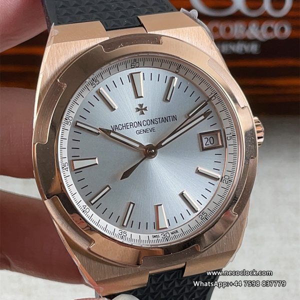 Overseas 4500V 41mm Silver Dial RG Black Rubber Strap 8F A5100