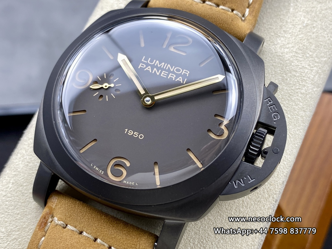 PAM375 47mm Luminor Ceramic Grey Dial Brown Leather Strap HWF P3000
