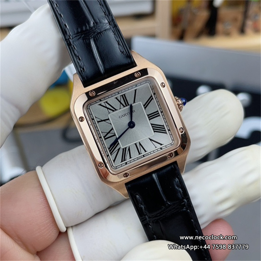 Santos Dumont 38*27.5mm RG White Dial Black Leather Strap F1F Swiss Quartz