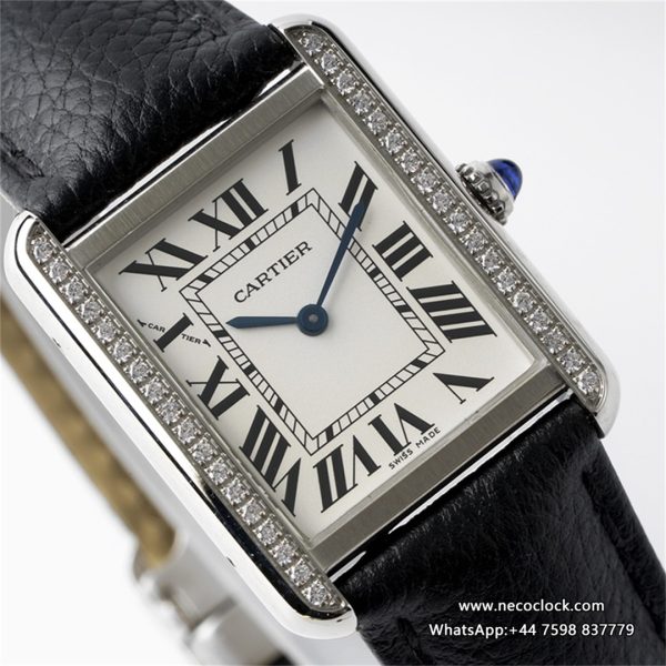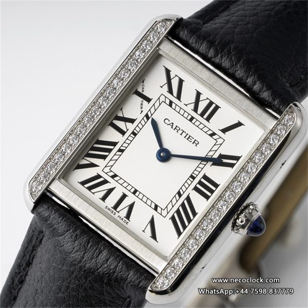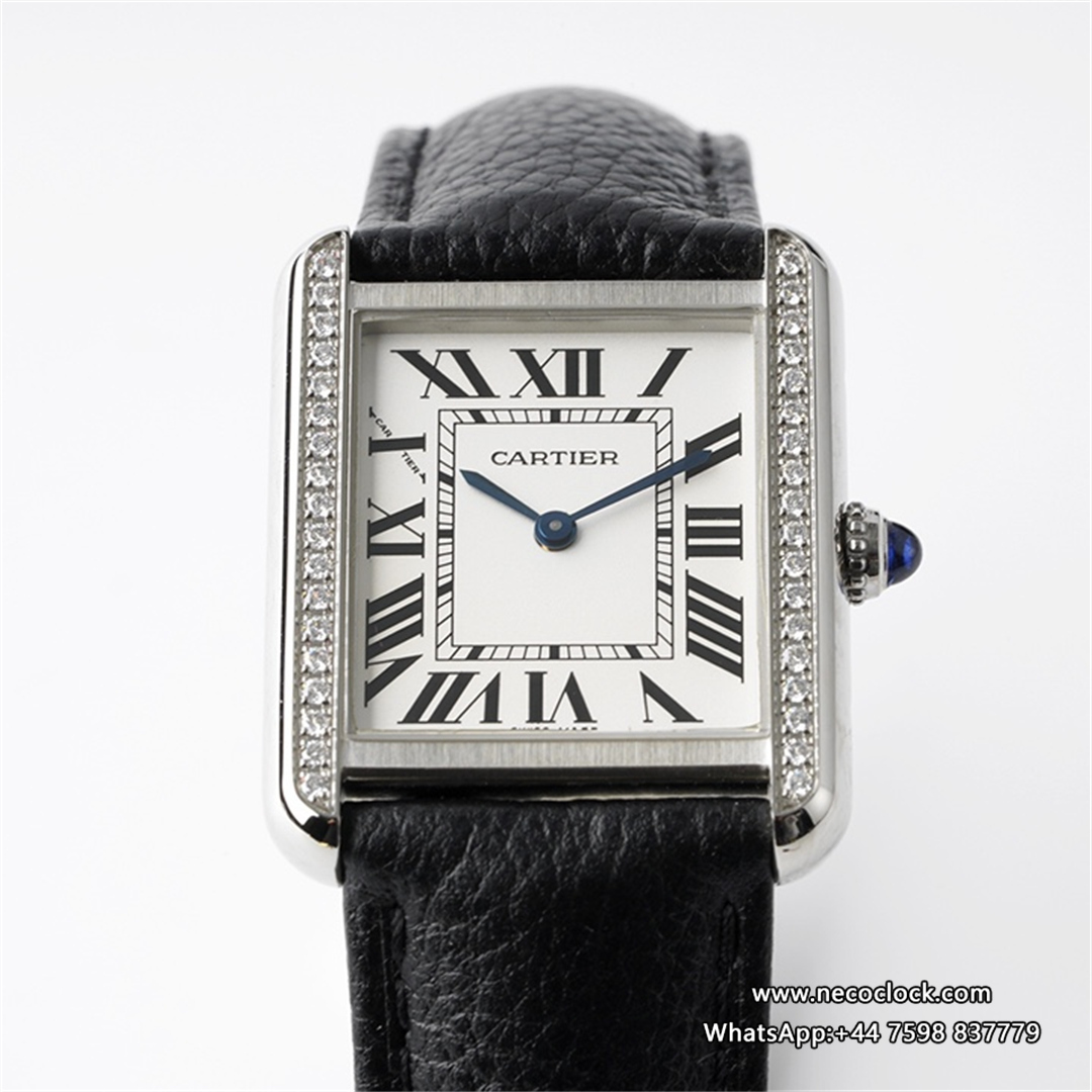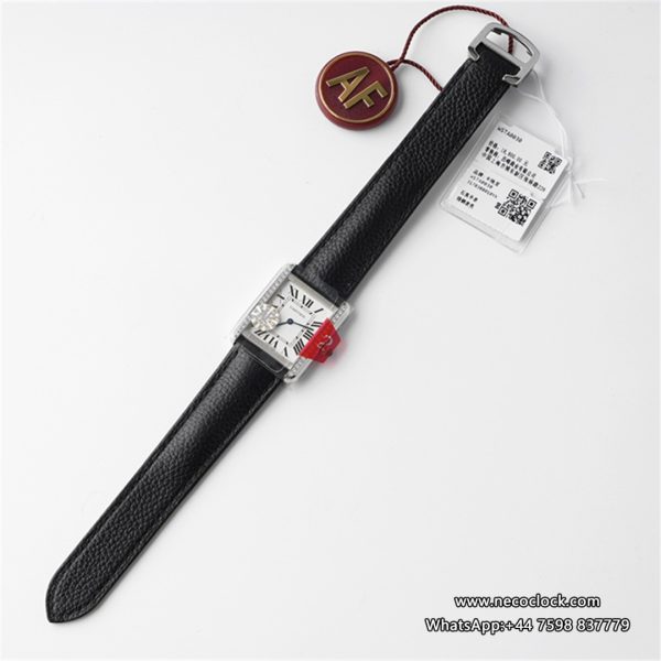 Tank Solo 24.4mm Dia White Dial Diamond Black Leather AF Quartz